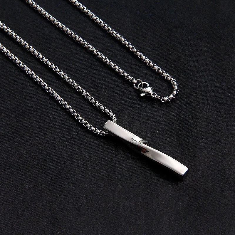 Este collar con colgante, diseñado para hombres, presenta un diseño minimalista y elegante, que se asemeja a un patrón retorcido. Fabricado en acero inoxidable duradero, irradia una sensación de elegancia discreta. La sencillez del colgante retorcido añade un toque de sofisticación al collar, convirtiéndolo en un complemento perfecto para hombres que buscan una pieza moderna y versátil para complementar su estilo.